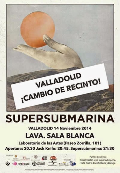 La apertura de puertas en el LAVA será a las 20:30. A las 20:45 los madrileños Jack Knife serán los encargados de calentar al público en calidad de artistas invitados, y finalmente sobre a las 21:30 serán los chicos de Supersubmarina los que salgan al escenario de la Sala Blanca para tocar tanto las nuevas canciones como los ya clásicos temas de la banda.