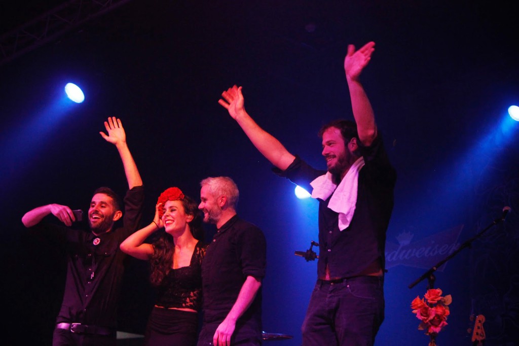 Aunque un poco más tarde de lo esperado, con sólo un choque de tacones rojos éramos transportados durante algo más de una hora y media a todo un mundo lleno de flores, confetti y energía. Mucha energía. Fuel Fandango, dúo formado por Nita (Voz) y Ale Acosta (Mezclas y producción) marcó Málaga como uno de los lugares para despedir la gira «Trece Lunas» después de más de un año sin visitar la ciudad. Esta vez, acompañados por batería y bajo.