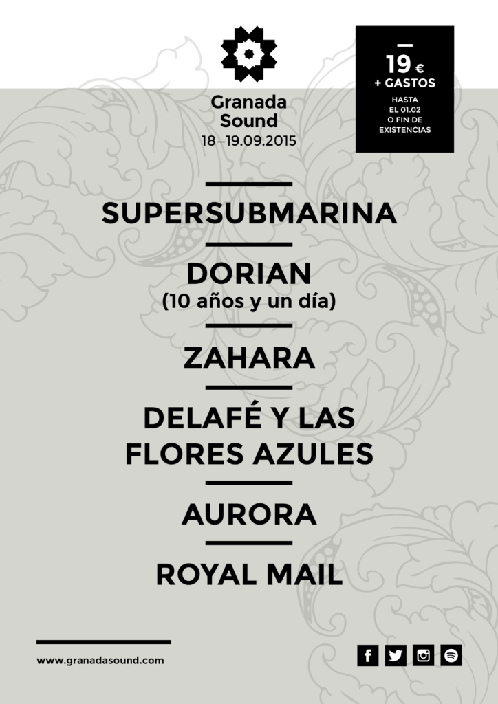 Ahora Supersubmarina y Aurora se suman a Dorian, Zahara, Delafé y las Flores Azules y Royal Mail, bandas que estarán tocando durante los dos días (ahora son dos) que durará el Granada Sound, 18 y 19 de septiembre de 2015.