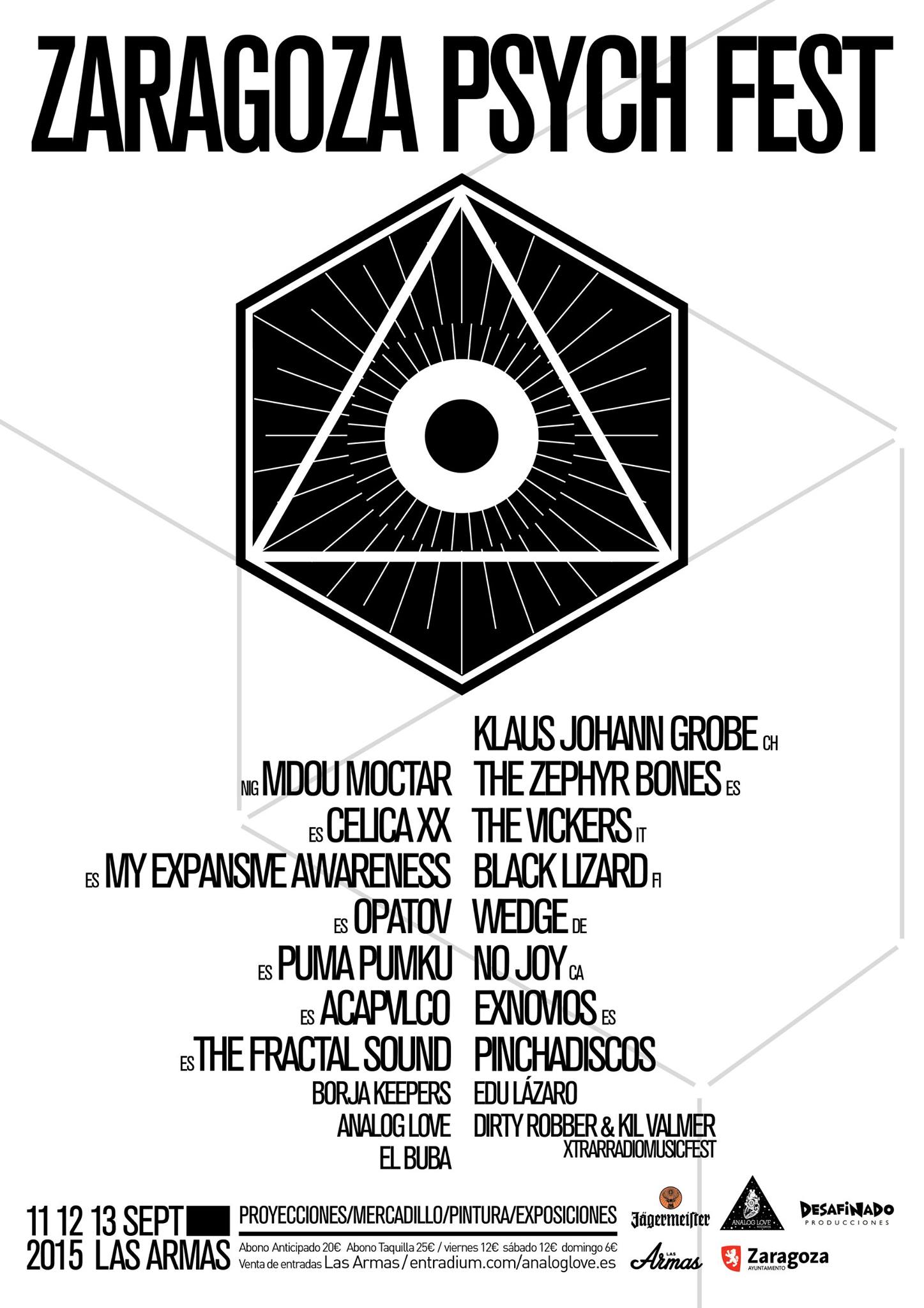 Aún así, BCN Psych Fest no ha sido el primero de nuestro país en organizar un festival que siga estos patrones. Zaragoza Psych Fest le puso agallas al asunto el año pasado (aun así sabiendo el posible peligro que conlleva organizar un festival de música psicodélica en España) y montó un cartelón repleto de talentos lisérgicos tanto nacionales como internacionales. Para la sorpresa de todos, un rotundo y exquisito éxito que ya tiene confirmada una nueva edición este 2016.
