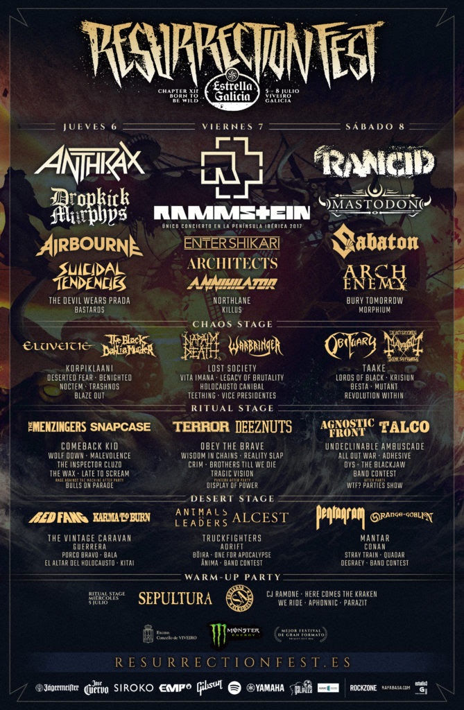 El Resurrection Fest es un festival de música que tiene lugar en la bella y marinera localidad de Vivero, en la provincia de Lugo. Una pequeña localidad de apenas 15.615 habitantes que desde 2006 celebra uno de los festivales más importantes del panorama metal, rock, hardcore y punk de la península. Un festival que poco a poco ha ido creciendo hasta el punto de congregar a 80.542 fieles en su pasada edición de 2016… así, para lo de letras: el Resu multiplica la población de Viveiro por cinco. Un festival por el que a lo largo de su historia han pasado grupos como Iron Maiden, Korn, Motorhead, The Offspring, In Flames, Megadeth, Slayer, NOFX, Bad Religion y muchos más.