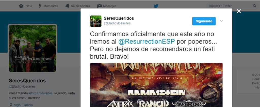 Hace pocos días Eladio y los Seres Queridos, una de las bandas favoritas de la redacción hipsterica, confirmaba de manera oficial su no asistencia al Resurrection Fest Estrella Galicia 2017 y a nosotros nos surgía la gran pregunta: ¿qué festival osa no contar con uno de nuestros grupos favoritos?
