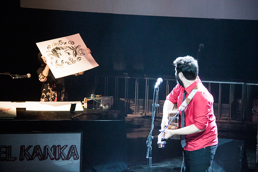 La sorpresa llegó cuando El Kanka salió puntual a escena sin ningún miembro de su habitual banda. Pero lejos de estar solo, aparecía acompañado de Anabel Pek, diseñadora de confianza y autora de la portada de su último disco, proclamando aquello de ‘Qué bello es vivir’. Y aunque la frase suene a topicazo puedo asegurar que escucharla en directo en la voz de Juan Gómez puede hacer que incluso te lo creas.