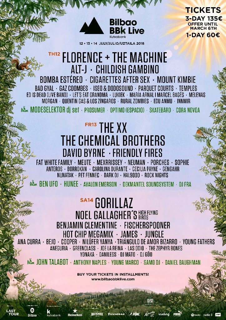 Como no era de extrañar, ultimas confirmaciones de esta cita festivalera han subido el listón a niveles casi estratosféricos: Florence + The Machine como cabeza de cartel del jueves, Childish Gambino, Cigarettes After Sex, Mount Kimbie, Hot Chip Megamix y Friendly Fires, entre otros, lideran las nuevas confirmaciones con las que Bilbao BBK Live cierra un cartel único, actual y cohesionado del que disfrutar del 12 al 14 de julio en el inigualable paraje natural de Kobetamendi. Durante tres mágicos días, lo mejor del panorama musical internacional se dará cita en la cima de una de las montañas que rodean la trepidante ciudad de Bilbao.