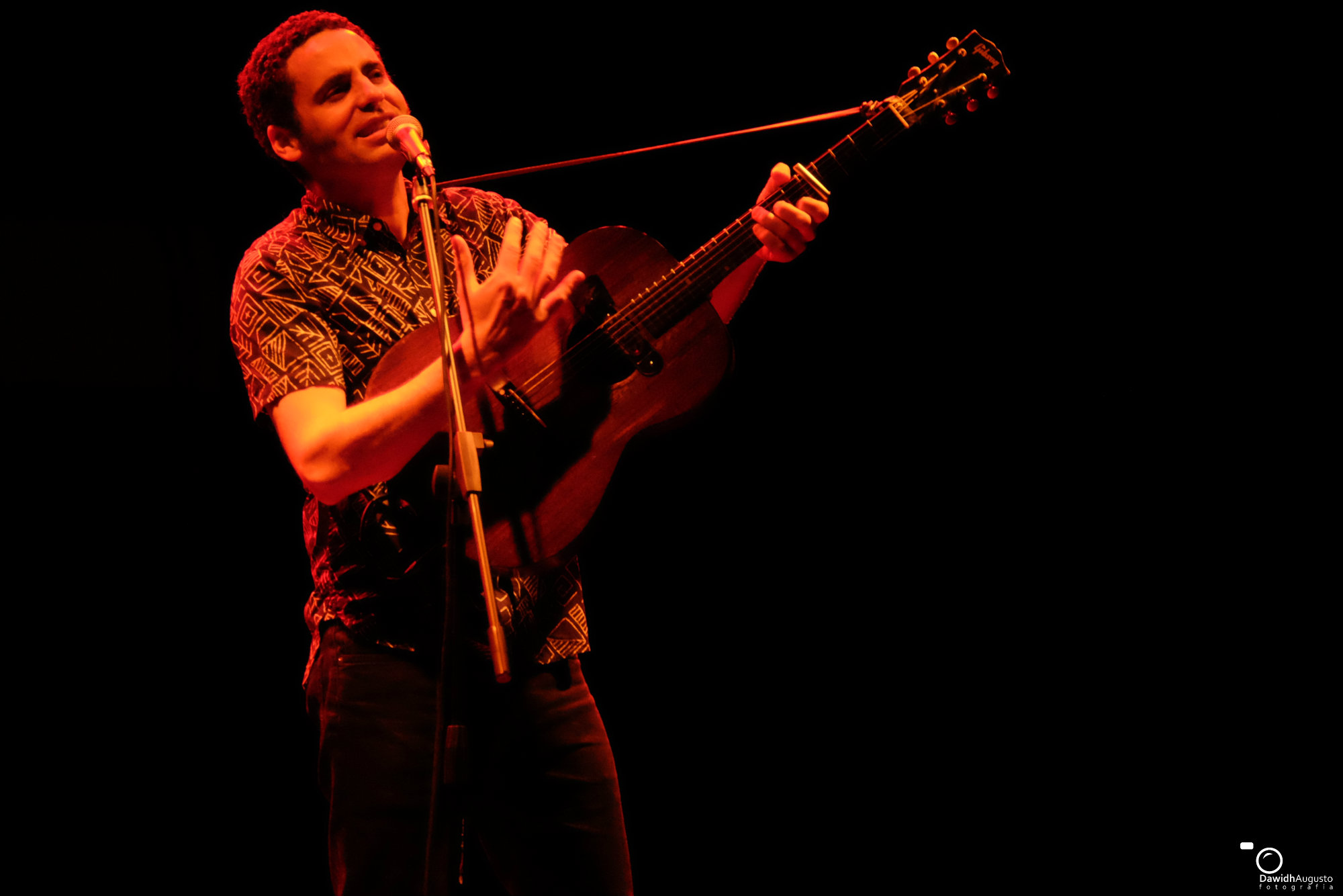 Comenzó ‘Como el Viento‘ y sin perder un segundo prosiguió ‘¿Hay algo Ahí?‘. Palmas y estribillo coreados, un público totalmente sumergido en el espectáculo que DePedro les ofrecía. En esos momentos decidí ganar un poco de distancia con el ambiente que derrochaba el Salón García y decidí prestar atención a lo que me rodeaba: caras de felicidad, sonrisas, cantos y miradas ilusión llenan un salón que colgaba el «no hay entradas». Muchos pensareis que esto puede tratarse de una exageración pero sirva como muestra este ejemplo: llegado ‘El Pescador‘ Jairo comentaba que de donde él viene es este tema se baila poco tardó una pareja en abandonar sus localidades para hacer suyo el pasillo central.