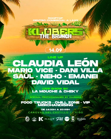 Este domingo, 14 de septiembre, el centro comercial A Laxe en Vigo volverá a encender su terraza con la segunda edición de Klubers The Brunch, un evento que mezcla música, gastronomía y sol en una jornada diurna que desafía las noches tradicionales. Tras el éxito de su debut a mediados de julio, la promotora Klubers, liderada por el DJ Mario Vice, regresa con una cita que promete estirar los últimos suspiros del verano desde las 14:00 hasta las 23:00, ofreciendo nueve horas de ritmos ininterrumpidos. Con un pronóstico de sol, cielos despejados y unos agradables 22ºC, este rooftop de más de 800 metros cuadrados (con vistas privilegiadas a la Ría de Vigo y las Islas Cíes)se transformará en un club al aire libre, cubierto parcialmente por una red de camuflaje que añade un toque distintivo.