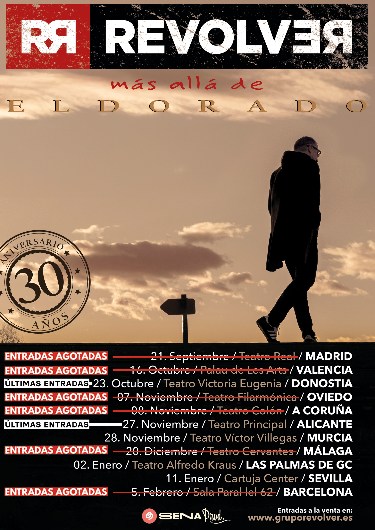 Carlos Goñi y su banda, Revólver, inician este fin de semana una de las giras más esperadas del panorama musical español. Con la contundencia de quien sabe lo que hace y por qué lo hace, la banda se sumerge de lleno en su pasado para celebrar el 30 aniversario de «Eldorado«, uno de los álbumes que, junto al célebre «Básico«, cimentó el sonido y la identidad de Revólver. Con once únicas fechas, el periplo musical arranca este domingo en un marco de lujo: el Teatro Real de Madrid, para el que ya no quedan entradas.